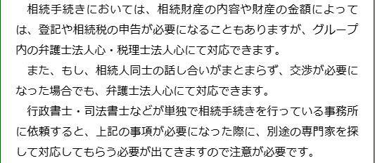 相続手続きは行政書士に任せることもできるため、お困りの場合にはまずご相談いただくのがよいかと思います。