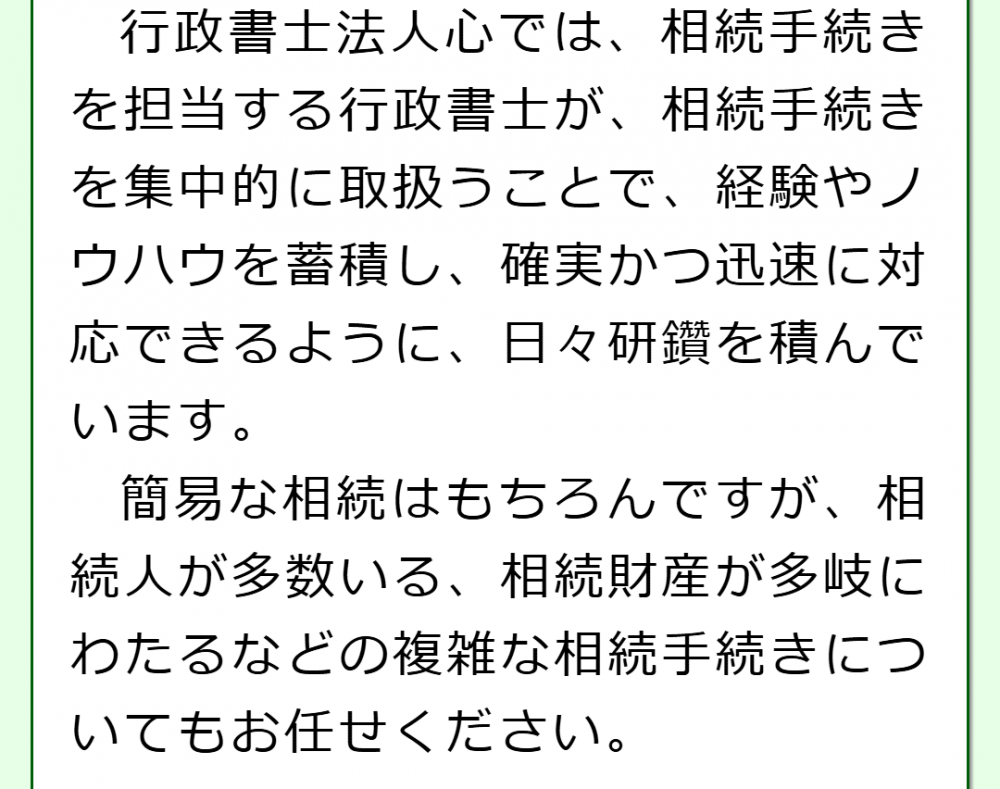 当法人では、相続手続きに注力している行政書士が皆様からのご相談を承ります。