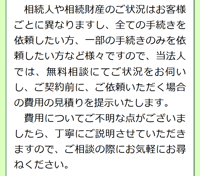 相続手続きに関するご相談は原則無料と、費用面でも相談しやすくなっていますので、松阪の方もまずご相談ください。