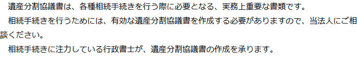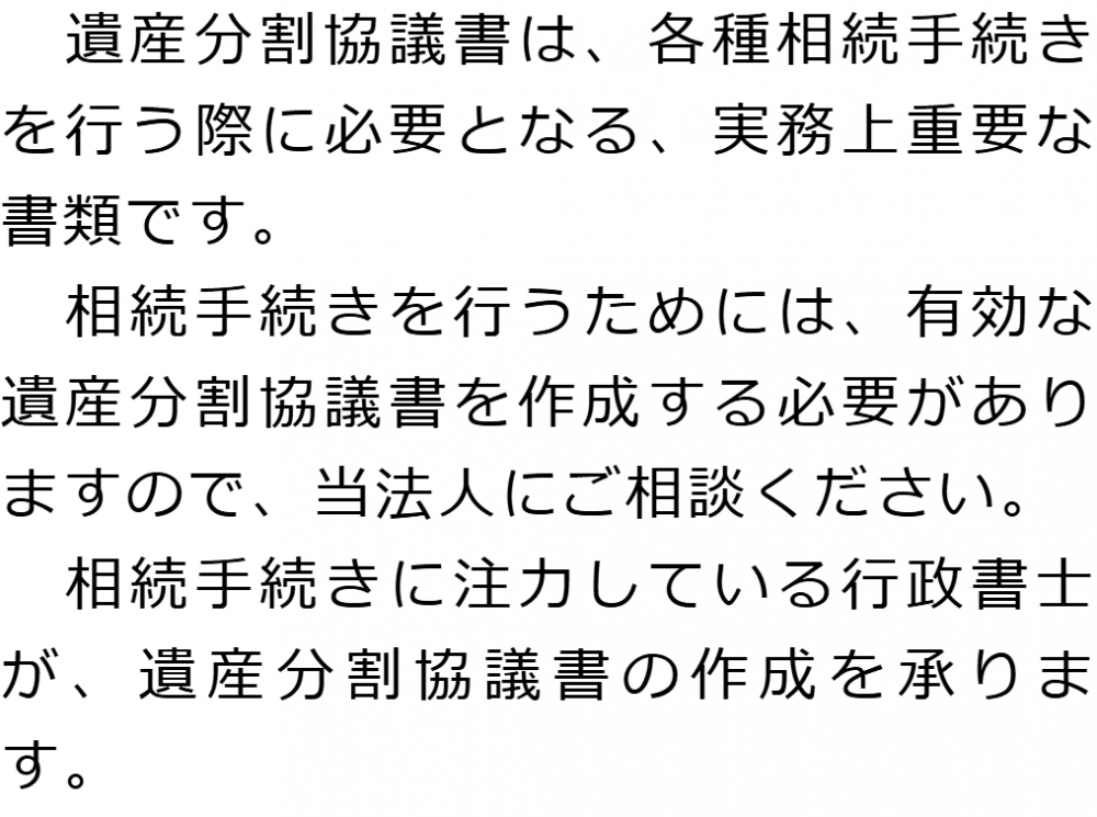 トップ業務内容遺産分割協議書の作成 階層構造▼ 業務内容(目次) 遺産分割協議書の作成 業務内容(目次)業務内容トップ行政書士法人心の業務内容遺言遺産整理相続人調査相続財産調査遺産分割協議書の作成預金・貯金の解約・名義変更証券口座の解約・名義変更自動車の名義変更心グループのその他の業務内容家族信託・民事信託節税対策事業承継遺言の検認相続放棄限定承認遺産分割遺留分侵害額請求相続登記相続税申告相続税調査 受付時間 平日 9時~21時、土日祝 9時~18時 夜間・土日祝の相談も対応します (要予約) 所在地 〒515-0017 三重県松阪市京町508-1101ビル4F 0120-2403-39 お問合せ・アクセス・地図