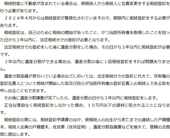 Q&A(目次)Q&Aトップ相続手続きの必要事項に関するQ&A 受付時間 平日 9時~21時、土日祝 9時~18時 夜間・土日祝の相談も対応します (要予約) 所在地 〒515-0017 三重県松阪市京町508-1101ビル4F 0120-2403-39 お問合せ・アクセス・地図