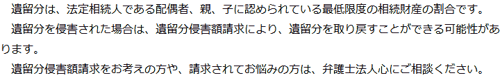 トップ業務内容遺留分侵害額請求 階層構造▼ 業務内容(目次) 遺留分侵害額請求 業務内容(目次)業務内容トップ行政書士法人心の業務内容遺言遺産整理相続人調査相続財産調査遺産分割協議書の作成預金・貯金の解約・名義変更証券口座の解約・名義変更自動車の名義変更心グループのその他の業務内容家族信託・民事信託節税対策事業承継遺言の検認相続放棄限定承認遺産分割遺留分侵害額請求相続登記相続税申告相続税調査 受付時間 平日 9時~21時、土日祝 9時~18時 夜間・土日祝の相談も対応します (要予約) 所在地 〒515-0017 三重県松阪市京町508-1101ビル4F 0120-2403-39 お問合せ・アクセス・地図